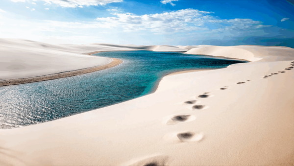 A saída de São Luís ocorre às 08:00h*, com destino a Barreirinhas, e chegada prevista para às 12:00h*. Às 14:00h*, é feito o embarque em veículo 4×4 para atravessar o Rio Preguiças de balsa e seguir por trilhas até os Grandes Lençóis. No circuito da Lagoa Bonita, as imponentes dunas, algumas com até 50 metros de altura, tornam a paisagem deslumbrante e desafiadora. Durante o passeio, os visitantes terão a oportunidade de conhecer as lagoas do Maçarico, Clone e Bonita, com o retorno previsto após o pôr do sol.