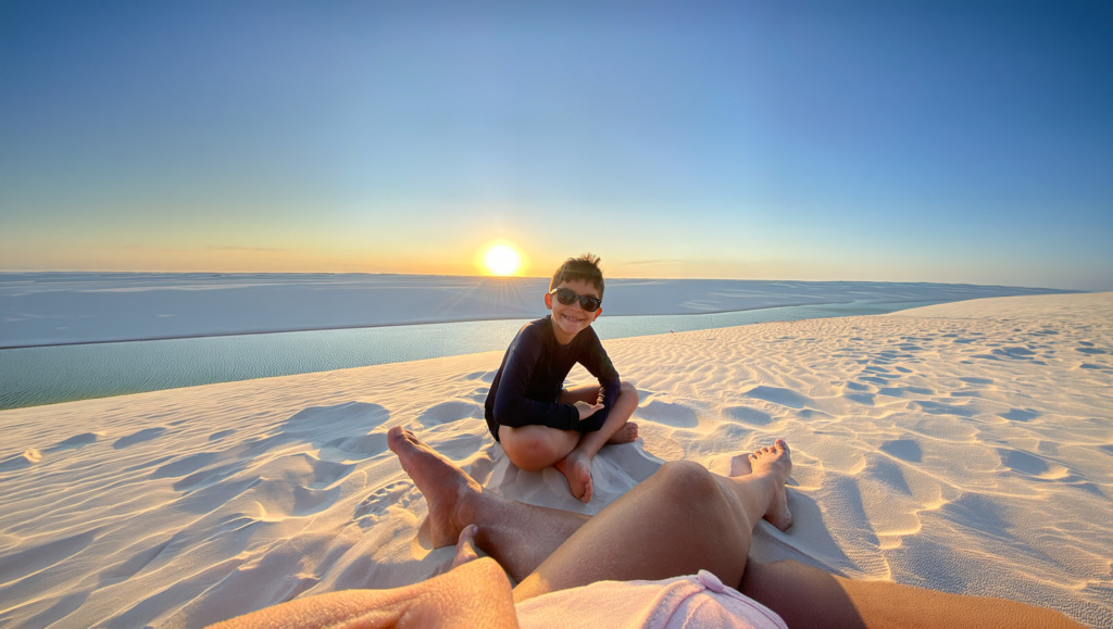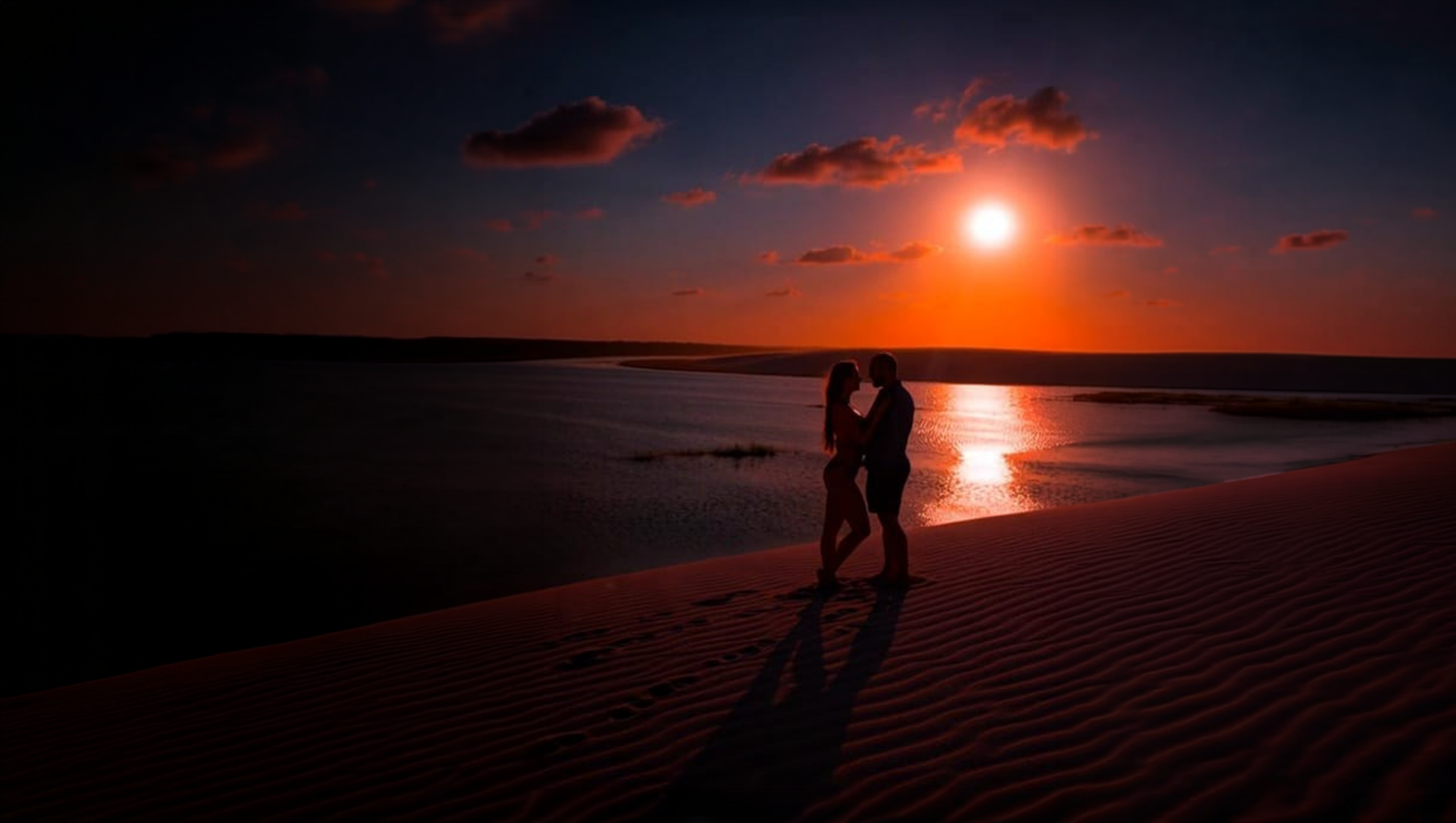 A saída é realizada a partir de Barreirinhas, em veículo 4×4, com destino aos Grandes Lençóis. Pela manhã, acontece o passeio até a Lagoa Azul, com tempo para banho e contemplação. Em seguida, há parada para almoço em restaurante da região. À tarde, o roteiro segue para a Lagoa Bonita, com retorno ao pôr do sol.