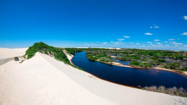 Em seguida, o trajeto continua rumo a uma região de lagoas cristalinas, com colorações em tons de verde e azul, rodeadas por uma infinidade de dunas, onde fica a Lagoa de Andorinhas, um dos principais atrativos da região.