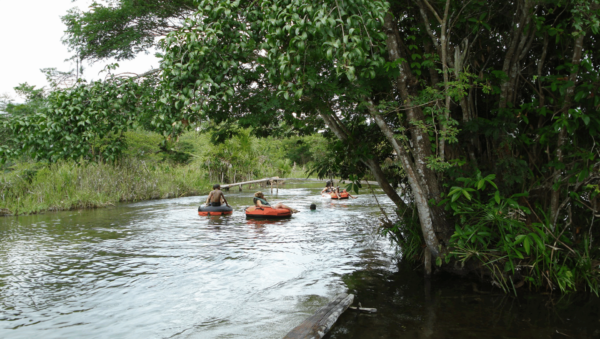 Após o café é feito o embarque em veículo tipo jardineira para o passeio de Boia Cross em Cardosa, iniciando a descida de boia pelo Rio Formiga. A correnteza conduz os visitantes ao longo de 3 km de águas cristalinas e relaxantes, em um percurso que dura aproximadamente 1 hora.