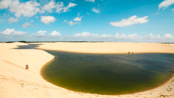 Saída de São Luís às 04:00h* com destino a Barreirinhas, com previsão de chegada às 08:00h*. Após o check-in na pousada, o embarque em veículo 4×4 está programado para as 14:00h*. O passeio inclui a travessia do Rio Preguiças em balsa e um trajeto por trilhas até os Grandes Lençóis, com visita ao circuito da Lagoa Bonita. As dunas impressionam pela beleza e desafio, alcançando até 50 metros de altura. Durante o percurso, há paradas nas lagoas Maçarico, Clone e Bonita.