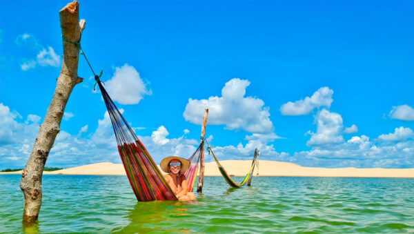 O passeio continua até Caeté, onde é feita uma breve pausa para desfrutar de água de coco. Em seguida, o roteiro prossegue para Vassouras, localizada à beira do Rio Preguiças. O trajeto inclui passagem pelo Morro do Boi, até chegar à Praia de Caburé, onde os visitantes podem aproveitar o banho de mar e o almoço. No retorno, a travessia é realizada pela estação eólica, completando a experiência com belas paisagens.