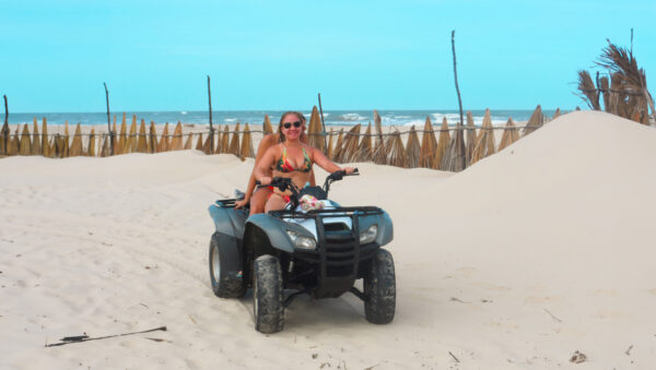 O passeio de quadriciclo é realizado por trilhas, começando com um trecho asfaltado de aproximadamente 2 km. Em seguida, o trajeto passa pela trilha conhecida como Bosque, em direção aos Pequenos Lençóis. Nesse percurso, há uma parada na Lagoa do Alazão para banho, além de atividades como caiaque e tirolesa.