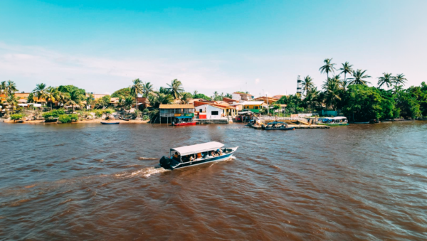 A partida é feita em lancha tipo voadeira para um percurso de 10 km pelo Rio Preguiças, com a primeira parada no Povoado de Tapuio, onde está localizada a Casa de Farinha. No local, os visitantes acompanham todo o processo de produção da farinha, desde o corte da mandioca até a degustação do produto final. Além disso, é possível desfrutar de um banho de rio e saborear pratos típicos da culinária regional.
